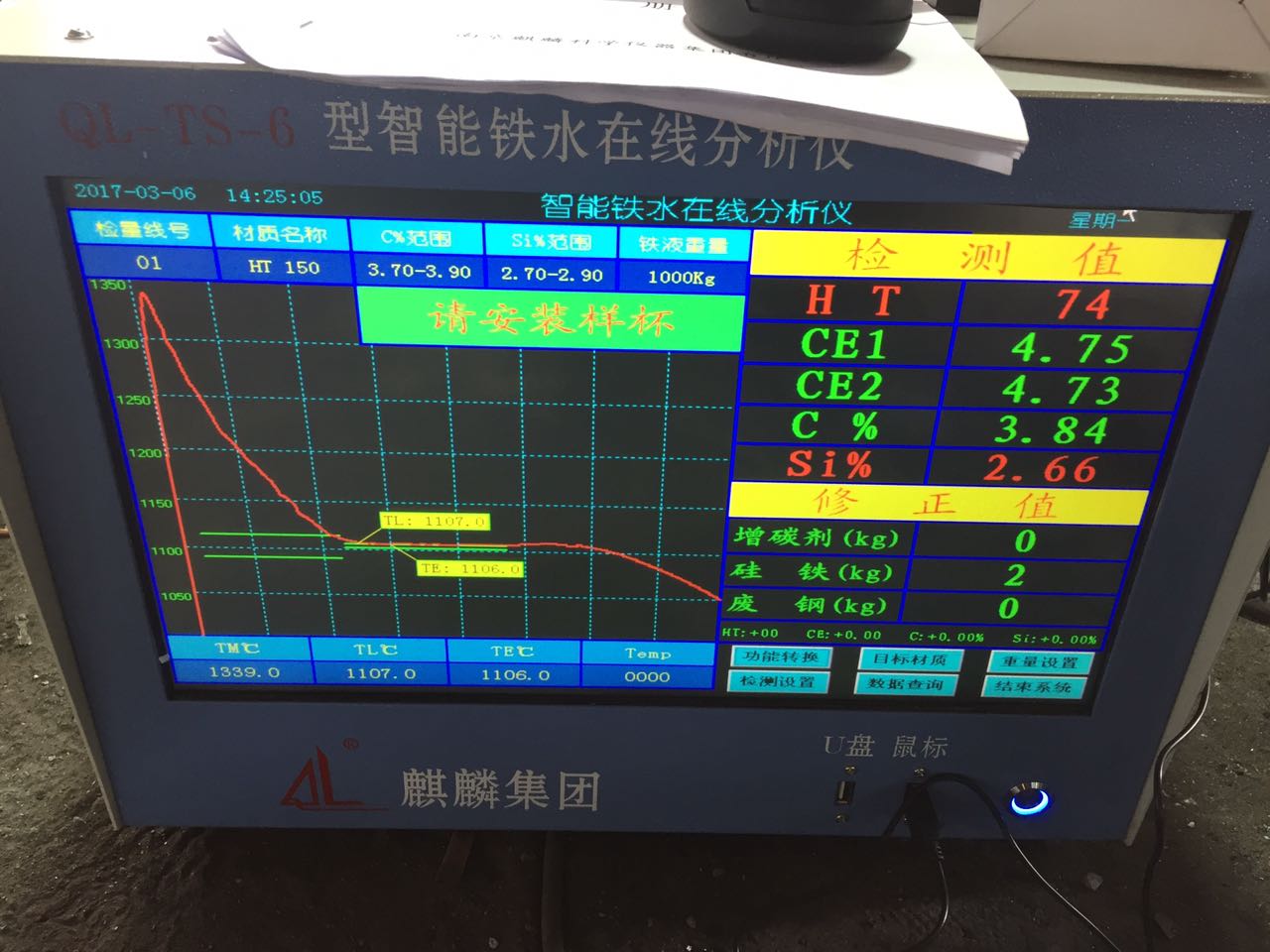 QL-TS-6型智能鐵水在線分析儀主要用于生鑄鐵,球鐵材料中碳、硅元素化學(xué)分析;